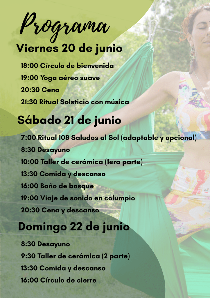 Será un viaje profundo y luminoso a través del yoga aéreo, la cerámica, el sonido, los rituales y el silencio. Una oportunidad para soltar, abrir espacio, y honrar lo que eres. 🌿 Desde el cuerpo. Con el alma. En plena luz.
