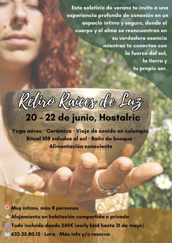 Raíces de Luz es un retiro íntimo para reconectar con el cuerpo, liberar la energía estancada y volver a lo esencial. Un espacio para aterrizar en la tierra, sentir el sostén de tus raíces y dejar que la luz te atraviese y te transforme.
