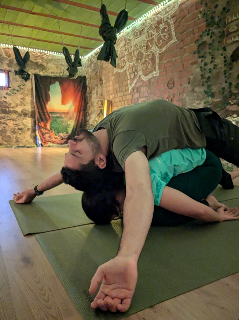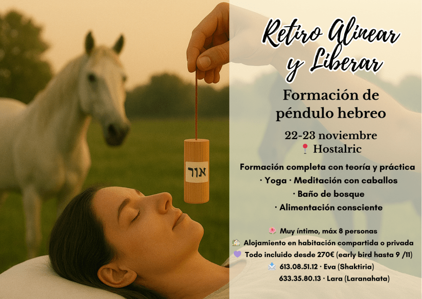 * 2 actividades a elegir. Te propongo: 1 práctica de yoga aéreo personalizada por la mañana y 1 sesión de péndulo hebreo para limpiar y armonizar tu campo energético.