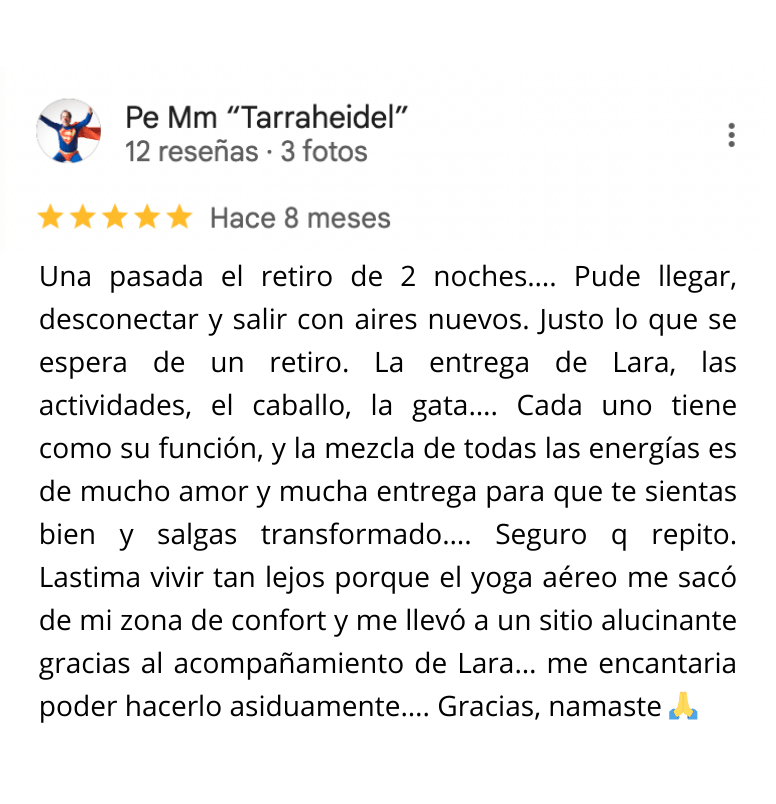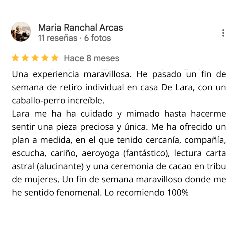 Te ofrezco varias modalidades de retiro para que puedas ajustarlo al tiempo, prácticas y presupuesto. Si sois más de 2 personas, escribirme y hablamos sobre precios y reparto de habitaciones 😉