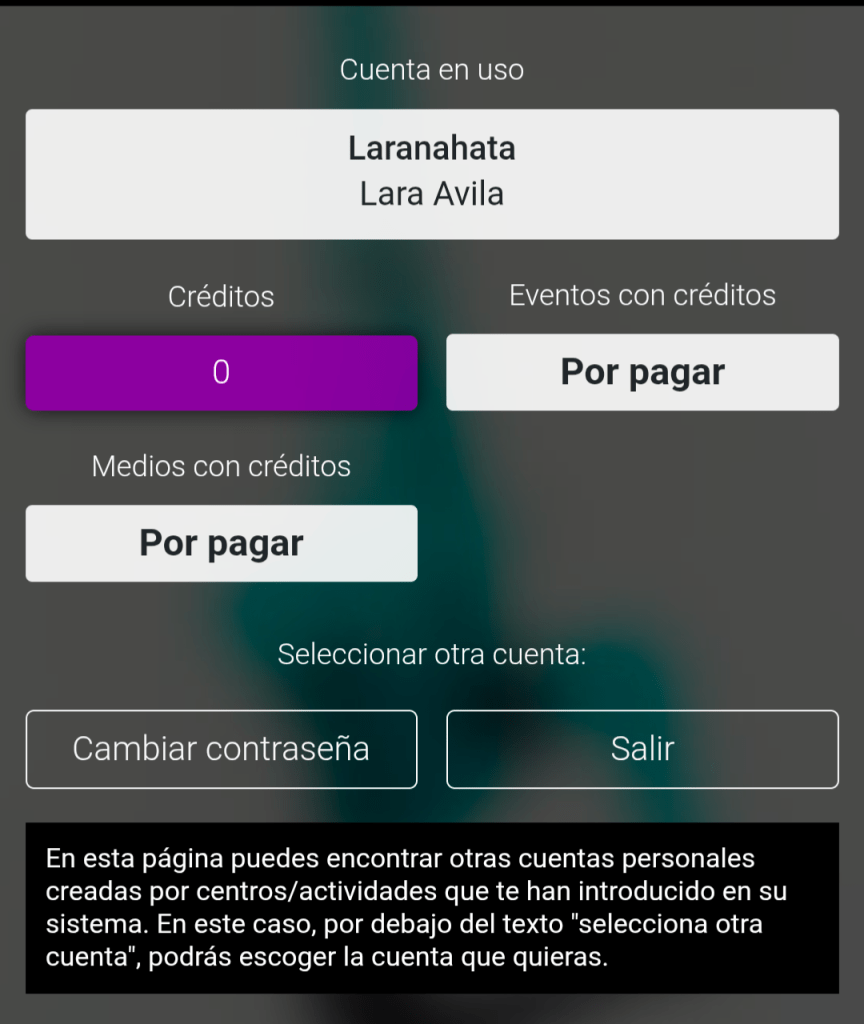 Te recomiendo cambiar la contraseña. Aquí abajo a la derecha donde dice cuenta. Cuando abras te saldrá las clases que tienes activas (créditos) y debajo a la izquierda hay un botón que dice «cambiar contraseña«. Ve ahí y cambia introduciendo primero los números y después la contraseña que elijas.
