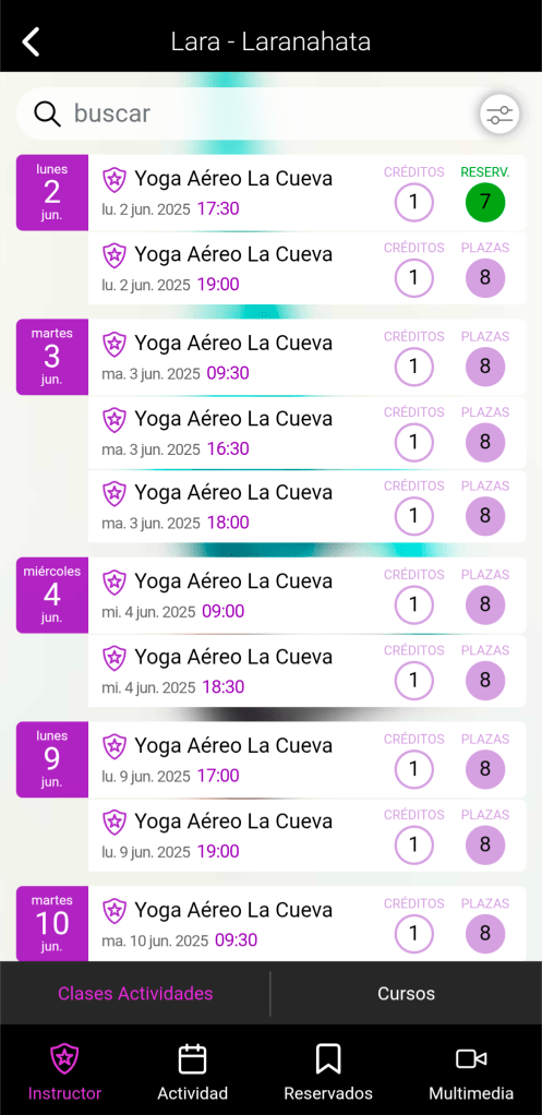 Con esto ya estarías dentro de la app! Desde aquí podrás ver, reservar y cancelar las clases.