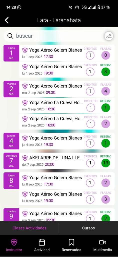 Para ver con más claridad, puedes clicar abajo donde dice «Reservados» y ahí sólo te saldrán tus clases, no todas.